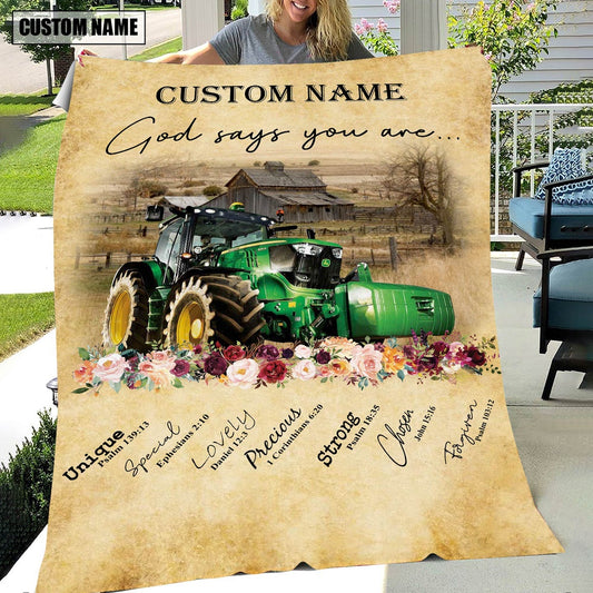 God Says You Are Personalized Name Tractor Blanket, Farm Blanket, Farm Animal Blanket