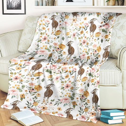 Nubian Goat 2 Floral Pattern Blanket, Farm Blanket, Farm Animal Blanket