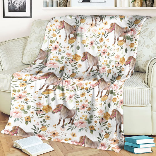 Ponies Horse Floral Pattern Blanket, Farm Blanket, Farm Animal Blanket