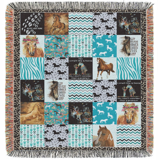 My Soul Smells Like Horses All Over Printed 3D Woven Blanket, Farm Blanket, Farm Animal Blanket