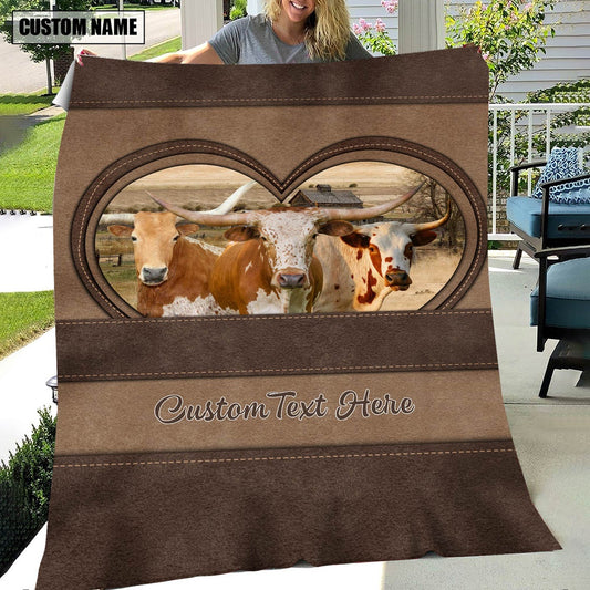 Texas Longhorn In Heart Personalized Name Blanket, Farm Blanket, Farm Animal Blanket