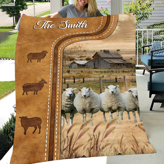 Personalized Sheep Cattle In Field Farmhouse Blanket, Farm Blanket, Farm Animal Blanket