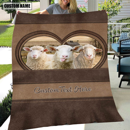 Sheep In Heart Personalized Name Blanket, Farm Blanket, Farm Animal Blanket