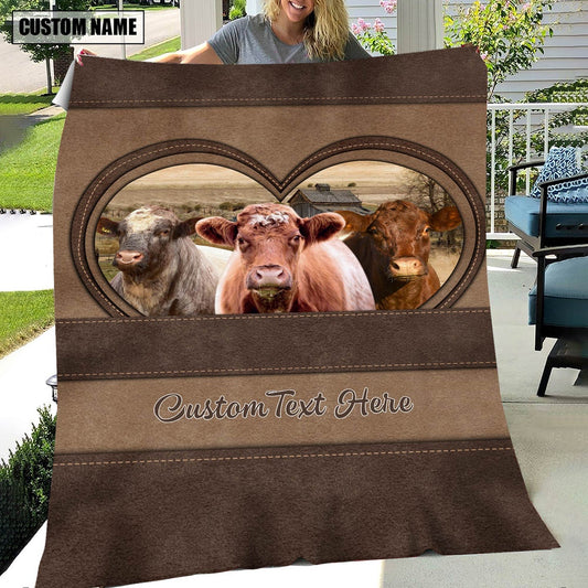 Shorthorn In Heart Personalized Name Blanket, Farm Blanket, Farm Animal Blanket