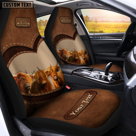 Highland Personalized Name Leather Pattern Car Seat Cover For Customer, Car Seat Cover, Farm Car Seat Cover, Pet Seat Covers
