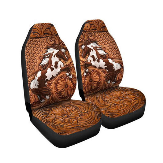 White Horse Personalized Name Black And Brown Leather Pattern Car Seat Cover, Car Seat Cover, Farm Car Seat Cover, Pet Seat Covers
