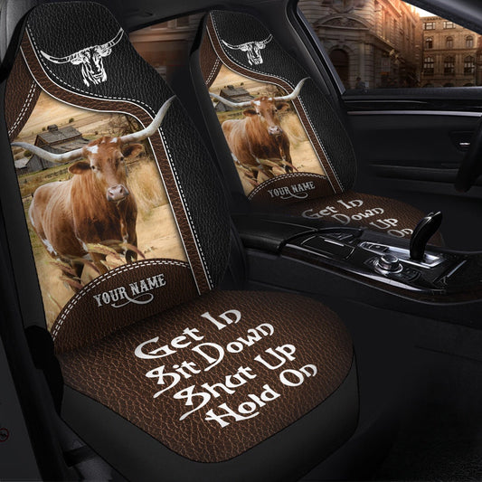 Texas Longhorn Personalized Name Black And Brown Leather Pattern Car Seat Cover, Car Seat Cover, Farm Car Seat Cover, Pet Seat Covers