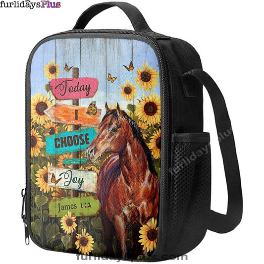 Today I Choose Joy Horse Sunflower Field Monarch Butterfly Lunchbag Lunch Bag, Christian Lunchbag, Bible Verse Lunch Bag