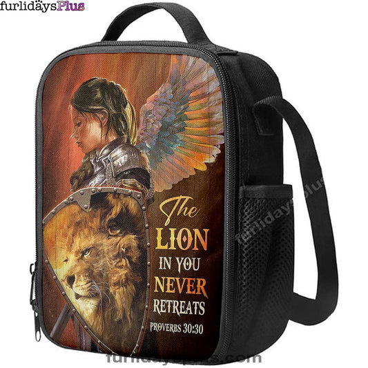 The Lion In You Never Retreats, Woman Warrior Lion Of Judah Lunch Bag, Christian Art, Bible Verse Lunch Bag