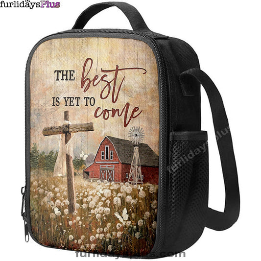 The Best Is Yet To Come Dandelion Field Wooden Cross Lunch Bag, Inspirational Lunch Bag