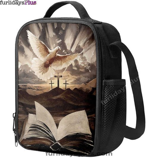 The Bible Dove Old Rugged Crosses Sunrise On Mountains Lunch Bag, Christian Art, Bible Verse Lunch Bag
