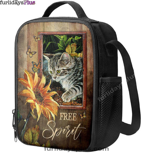 Sunflower Butterfly Cat Free Spirit Lunch Bag, Christian Art, Bible Verse Lunch Bag