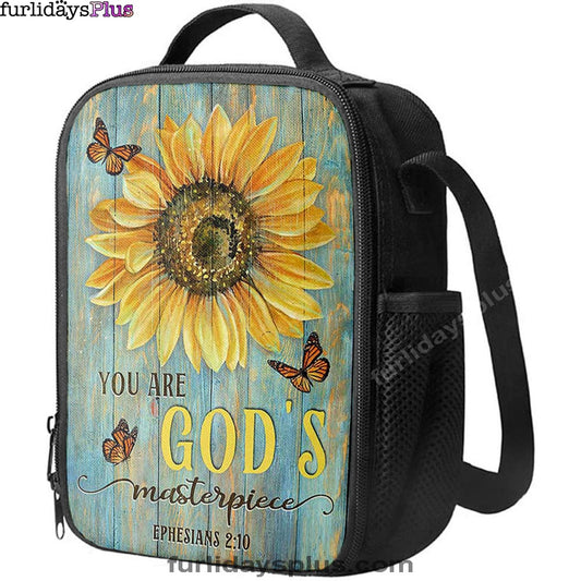 Sunflower Butterfly You Are God's Masterpiece Lunch Bag, Inspirational Lunch Bag, Christian Lunch Bag