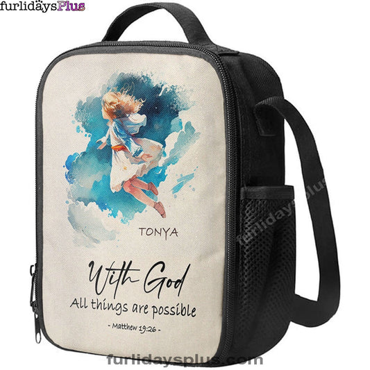 Matthew 196 With God All Things Are Possible Personalized Lunchbag, Religious Lunchbag, Bible Lunch Bag