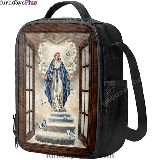 Maria Blue Butterfly Vintage Window The Way To Heaven Lunchbag Print, Inspirational Lunch Bag, Christian Lunchbag Lunchbag