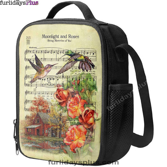 Moonlight And Roses Music Sheet Big Hummingbird Orange Rose Lunchbag, Christian Lunchbag