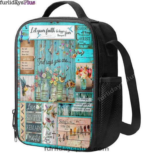 Let Your Faith Be Bigger Than Your Fear Humming Bird Lunchbag, Christian Lunch Bagl Lunchbag, Religious Lunchbag