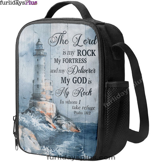Lighthouse Storm The Lord Is My Rock In Whom I Take Refuge Lunchbag, Christian Lunch Bag, Bible Verse Lunch Bag