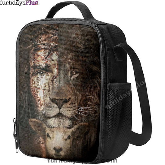 Lion And Lamb Face Lunchbag, Lion Lunchbag Print, Christian Lunchbag, Religious Lunchbag