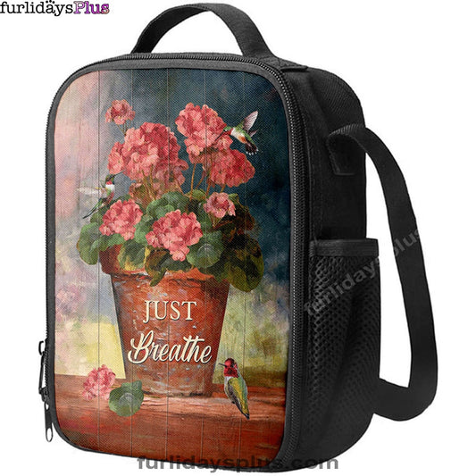 Just Breathe Flowerpot Hummingbird Lunchbag, Bible Verse Lunch Bag, Inspirational Art, Christian Lunchbag