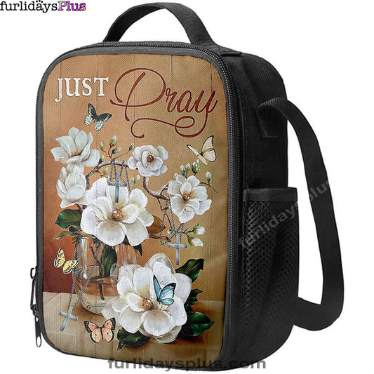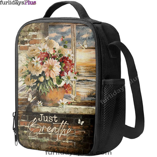 Just Breathe Flower Vase Butterfly Books Wooden Cross Lunchbag, Bible Verse Lunch Bag, Christian Lunchbag Lunchbag