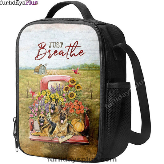 Just Breathe German Shepherd Dog Lunchbag, Bible Verse Lunch Bag, Inspirational Art, Christian Lunchbag