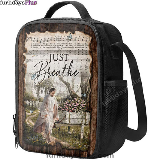Just Breathe Music Sheet Walking With Jesus Pretty Flower Garden Lunchbag, Christian Lunchbag, Bible Verse Lunch Bag