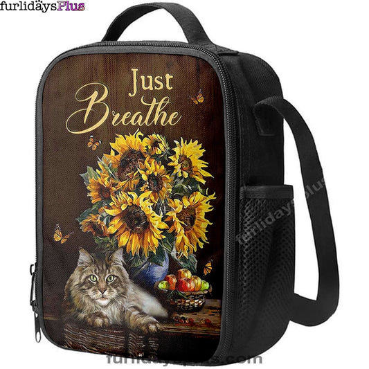 Just Breathe Sunflower Cat Lunchbag, Bible Verse Lunch Bag, Christian Lunchbag Lunchbag
