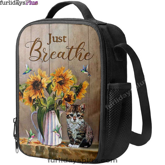 Just Breathe Sunflower Vase Little Cat Hummingbird Lunchbag, Bible Verse Lunch Bag, Christian Lunchbag Lunchbag