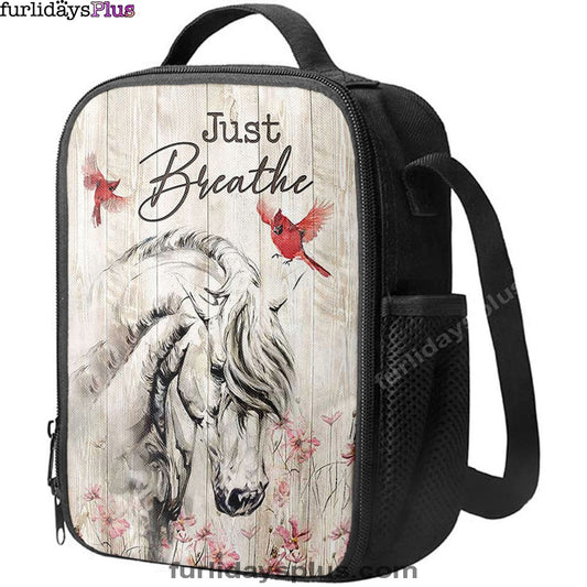 Just Breathe White Horse Red Cardinal Lunchbag, Bible Verse Lunch Bag, Christian Lunchbag Lunchbag