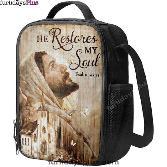 Jesus Portrait He Restores My Soul Lunchbag, Jesus Christ Lunch Bag, Christian Lunch Bag