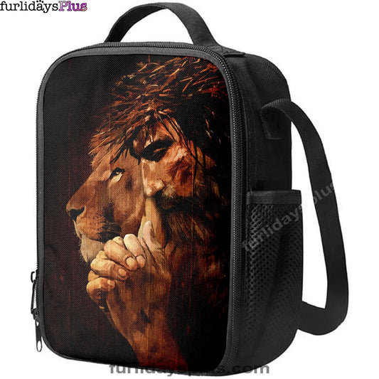 Jesus Pray Crown Of Thorn Lion Lunchbag, Jesus Portrait Lunchbag, Christian Lunchbag