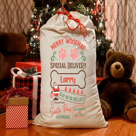 Personalised Christmas Sack, Merry Woofmas Dog Santa Sack, Christmas Bag