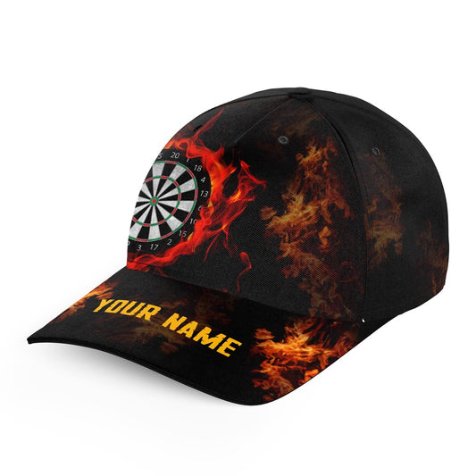 Personalized Dart Board Fire Flame Yellow Darts Caps For Player Custom Name Darts Hats, Darts Team Cap Hats