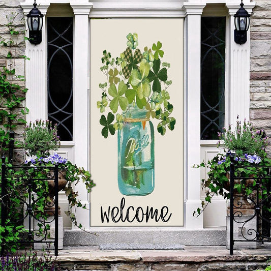 Welcome St Patrick's Day Lucky Shamrock Clover Door Cover, Patricks Day Home Door, Patrick Day Home Decor