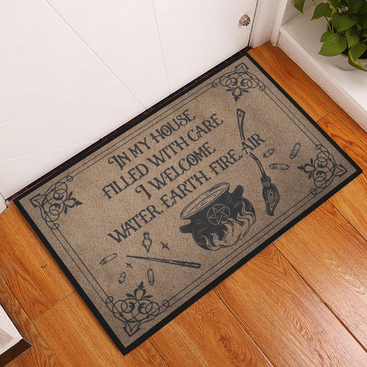 Wicca Welcome Doormat, Witch In My House Filled With Care Wicca Witch Welcome Doormat, Indoor Outdoor Doormat Home Decor