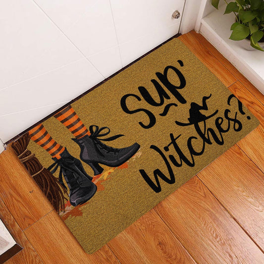 Wicca Welcome Doormat, Witch Wicca trick or treat Sup Witches Happy Halloween Welcome Doormat, Indoor Outdoor Doormat Home Decor