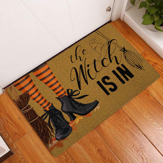 Wicca Welcome Doormat, Witch Wicca trick or treat The Witch Is In Happy Halloween Welcome Doormat, Indoor Outdoor Doormat Home Decor