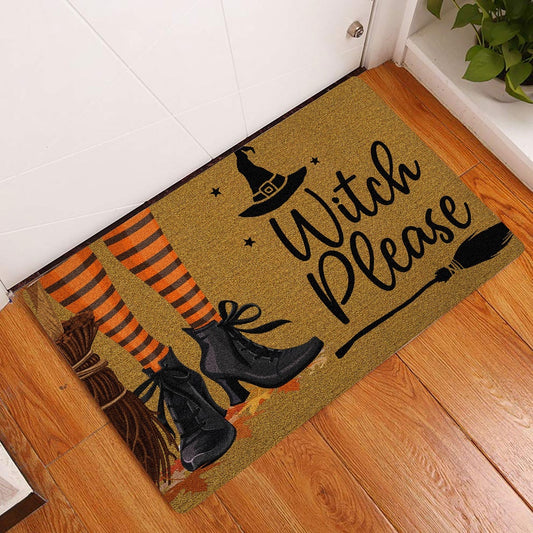 Wicca Welcome Doormat, Witch Wicca trick or treat Witch please Happy Halloween Welcome Doormat, Indoor Outdoor Doormat Home Decor