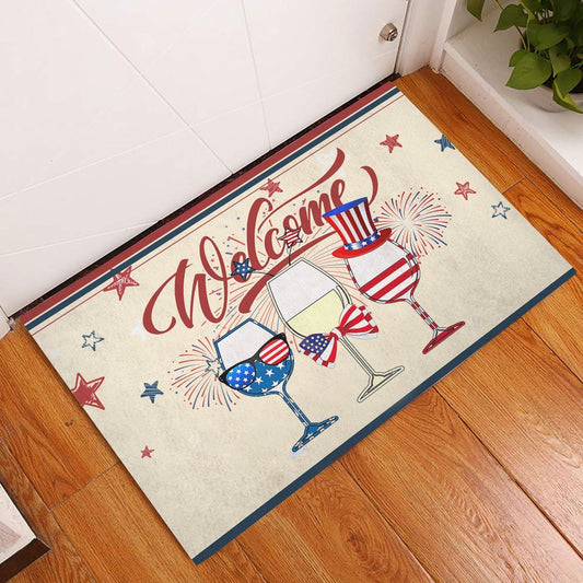 Welcome Doormat, Wine Patriotic American Firework 4Th of July Independence Day Welcome Doormat, Indoor Outdoor Doormat Home Decor