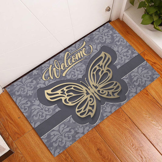 Welcome Doormat, Yellow Beautiful Butterfly Butterflies Welcome Floral Grey Welcome Doormat, Indoor Outdoor Doormat Home Decor