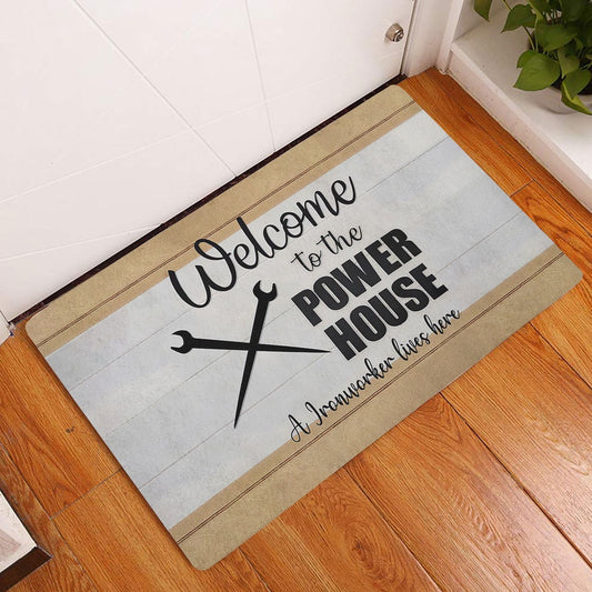 Welcome Doormat, Welcome To The Power House A Ironworker Lives Here Gift Welcome Doormat, Indoor Outdoor Doormat Home Decor
