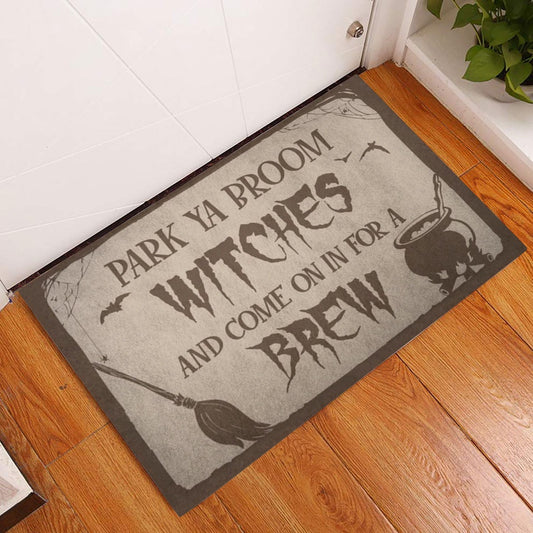 Welcome Doormat, Witch Park Ya Broom Witches And Come On In For A Brew Welcome Doormat, Indoor Outdoor Doormat Home Decor