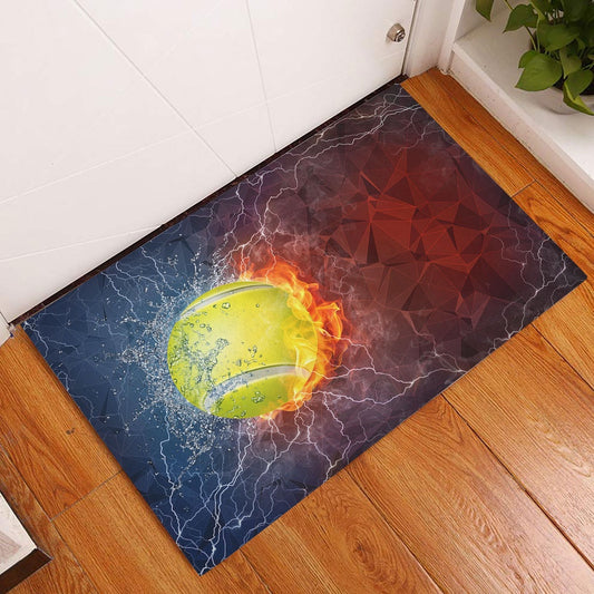 Welcome Doormat, Tennis Ball In Fire And Water Thunder Lightening Welcome Doormat, Indoor Outdoor Doormat Home Decor