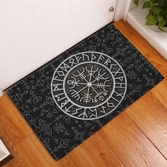 Welcome Doormat, Viking Celtic Compass Vegvisir Circle Norse Runes Black Welcome Doormat, Indoor Outdoor Doormat Home Decor