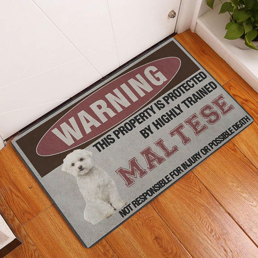 Welcome Doormat, Warning This Property is Protected by a Highly Trained Maltese Welcome Doormat, Indoor Outdoor Doormat Home Decor