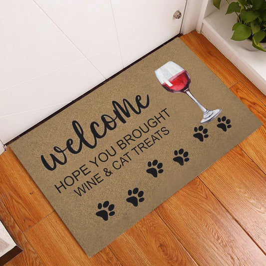 Welcome Doormat, Welcome Hope you brought wine and cat treats Gift For Cat Lover Welcome Doormat, Indoor Outdoor Doormat Home Decor