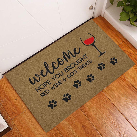 Welcome Doormat, Welcome hope you brought wine & dog treats Gift For Dog Lover Welcome Doormat, Indoor Outdoor Doormat Home Decor