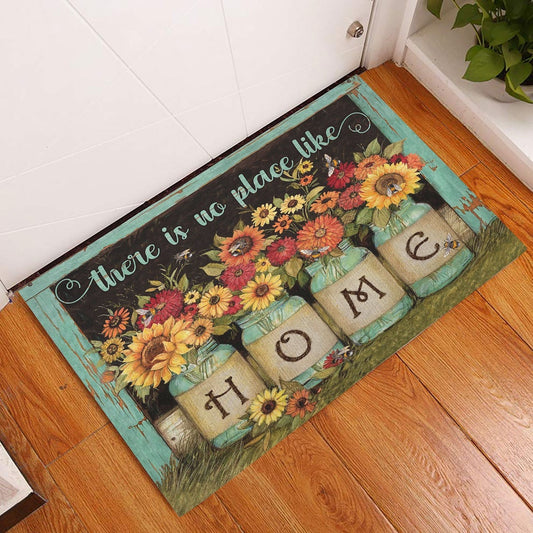 Welcome Doormat, There Is No Place Like Home Flower Floral Unique Gift Idea Welcome Doormat, Indoor Outdoor Doormat Home Decor