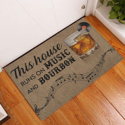 Welcome Doormat, This House Runs On Music And Bourbon Welcome Doormat, Indoor Outdoor Doormat Home Decor